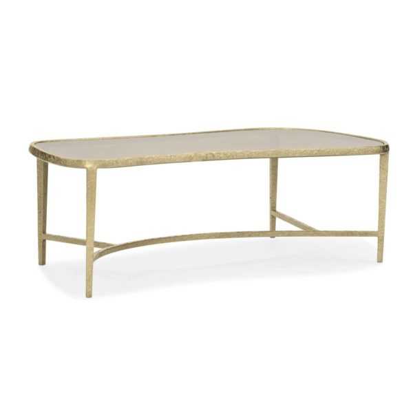 Light yet warm, this luxurious cocktail table captures the essence of modern organic styling and brings it home. Its clean lines meet rich, luxurious materials to create a visual that?s polished yet welcoming. The ultimate mate to your favorite sofa or sectional, this distinctive cocktail table boasts a rich mix of materials that includes a glass top tinted in a warm shade of brown supported by a cast-metal frame finished in a textured Lucent Bronze Metallic Paint. The organic form and unique texture of this Contour table brings movement into the occasional setting while anchoring it in style.