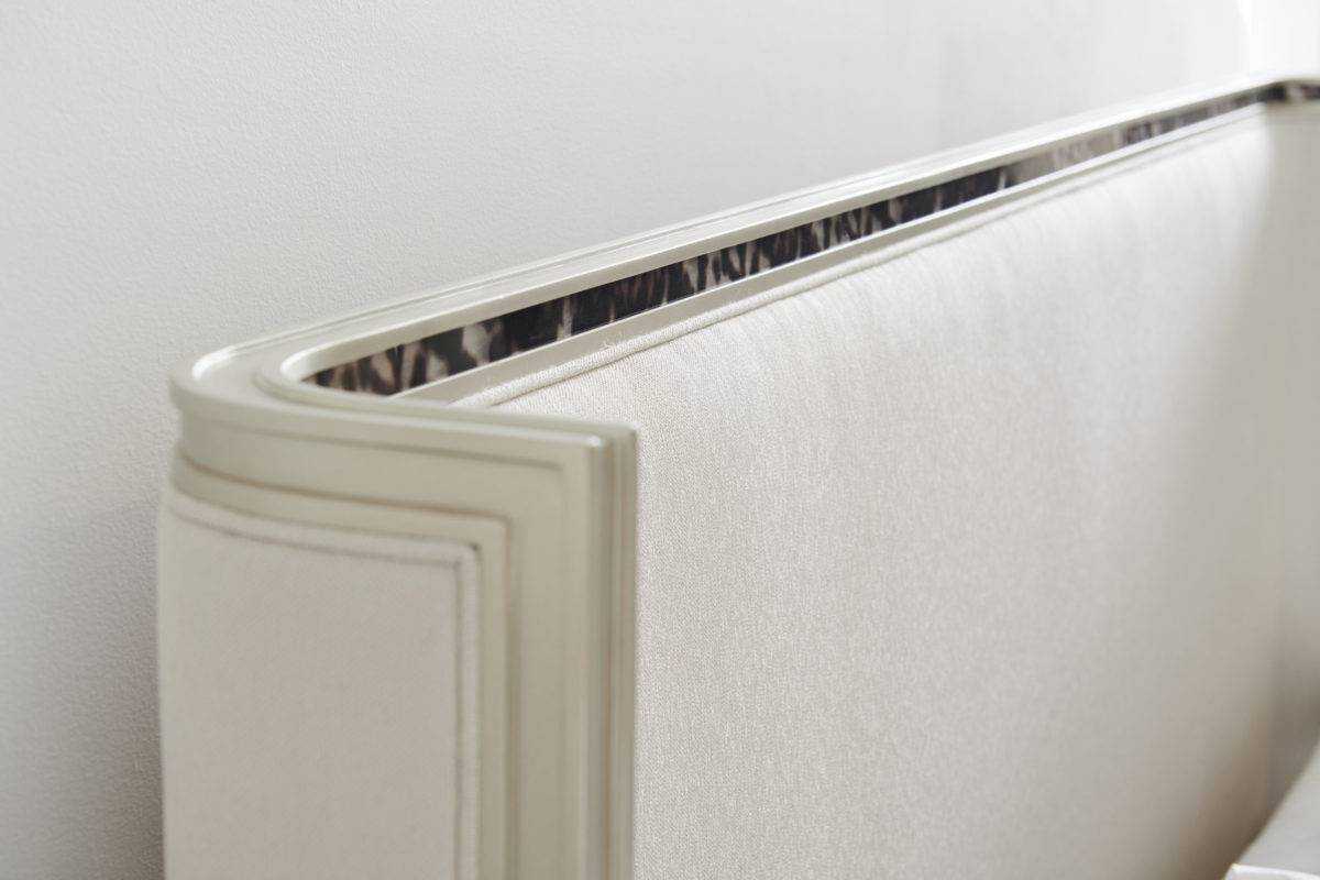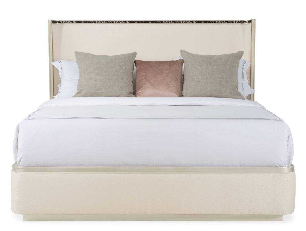 Lying in the elegant embrace of the Dream Big Bed, you can’t help but feel ensconced in style. A gently curving headboard and graceful profile give this upholstered bed its timeless appeal while acrylic tortoise shell-inspired inlay adds a touch of sophistication. Soft Silver Paint highlights its exquisite wood trim and draws the eye to its contemporary plinth base. Its statement-making silhouette creates a true focal point and instant interior design credibility.