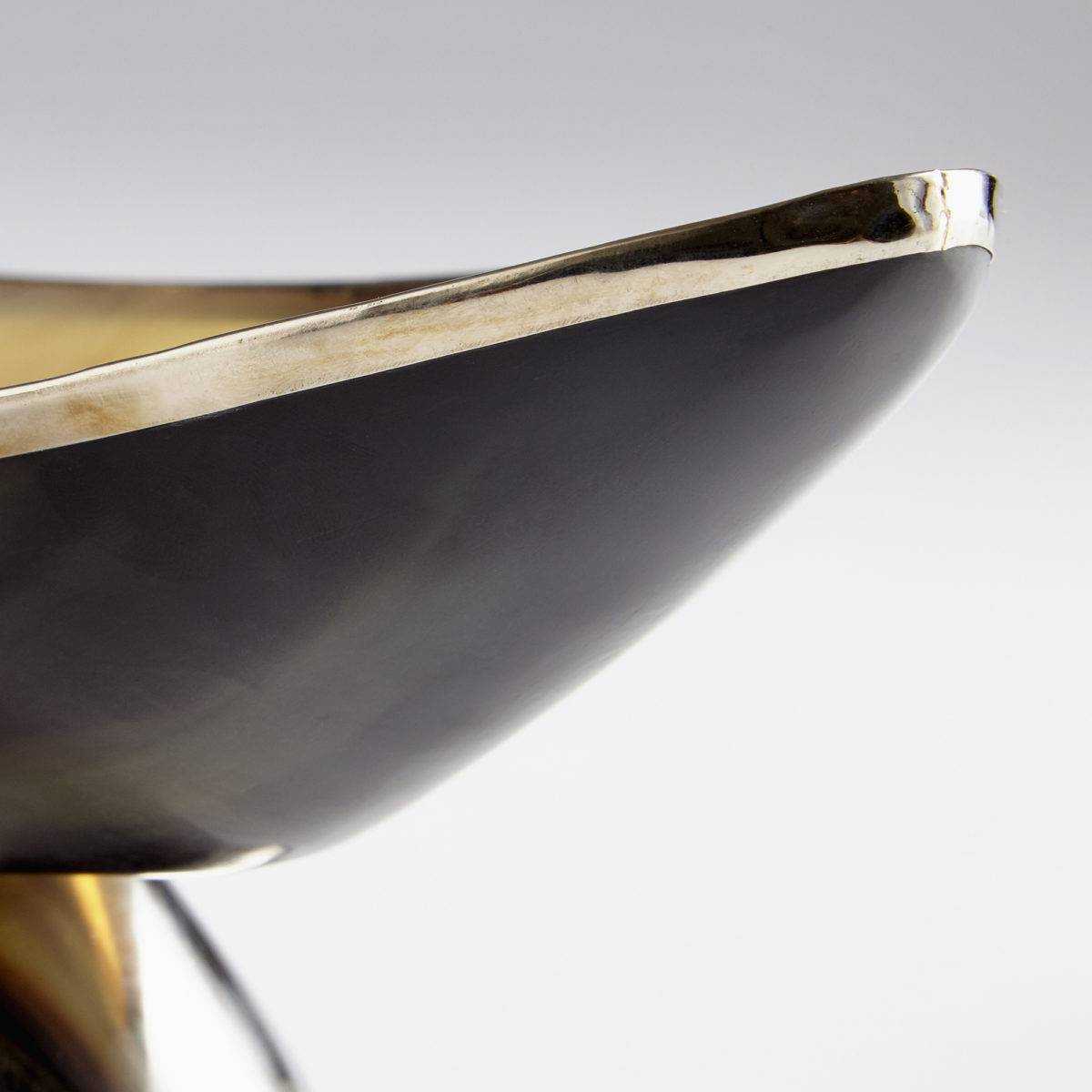 Polished horn and silver create a rustic drama while the modernly sleek oval shape adds elegance. This large nearly weightless tray adds a neutral refinement to a high boy table.