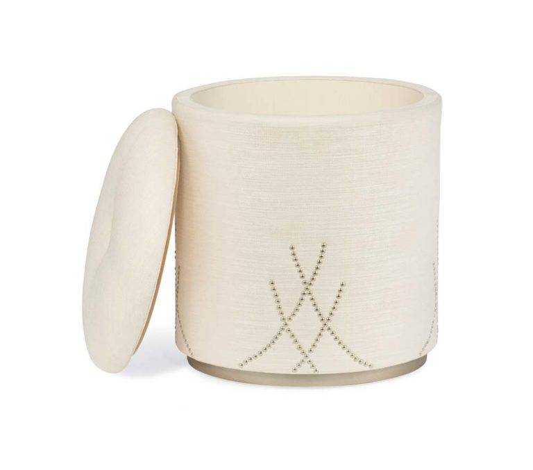 This ottoman is a multi-functional accent piece – perfect as a glamorous footstool or vital additional seating. Lift off the creamy, boucle-covered cushioned top with button detailing to find open space for magazines, shoes and other treasures. With the inside finished in Washed Alabaster and the base adorned with polished brass nail details, this little gem is any room’s best kept secret.