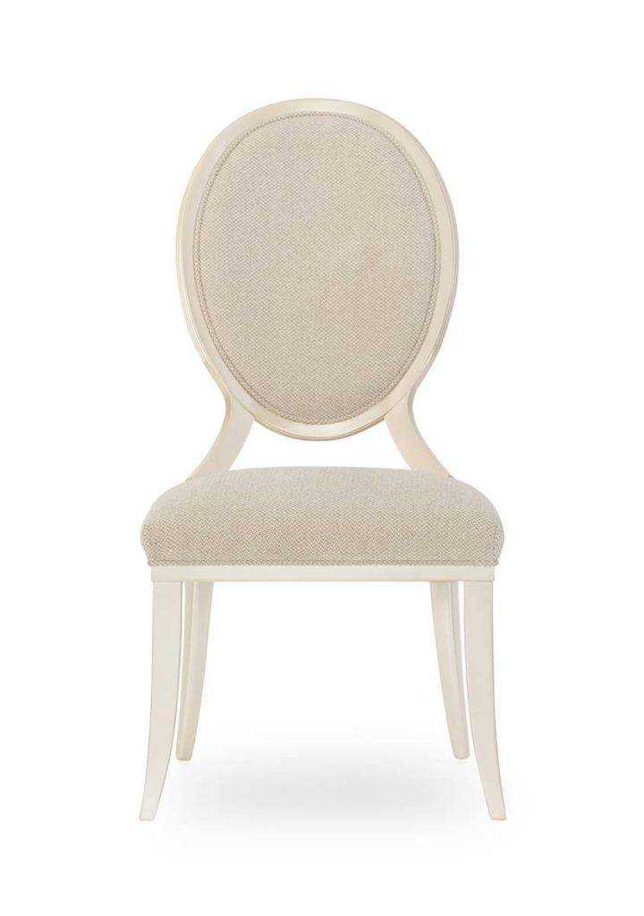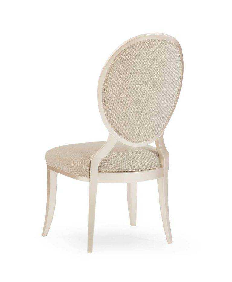 Classic tapered sabre legs and an exposed wood frame trimmed in Soft Silver Paint make this dining chair a stand-out. Its oval back and tight seat are upholstered in a shimmering brushed tweed fabric in neutral tones. Pair this chair with a traditional or contemporary dining table to add comfortable seating for long dinners and great conversation.