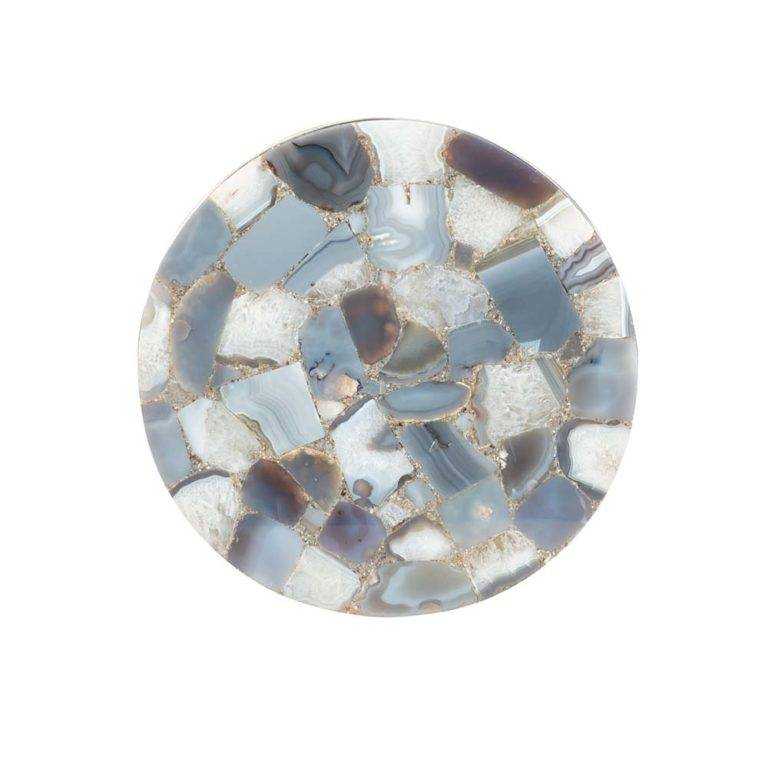 With its eye-catching natural grey agate stone top, this side table creates a fashionable design moment. It sits atop a polished stainless-steel frame featuring a three-legged design balanced with a circular base. The result is an impressive illustration of livable luxury packed into a petite footprint.