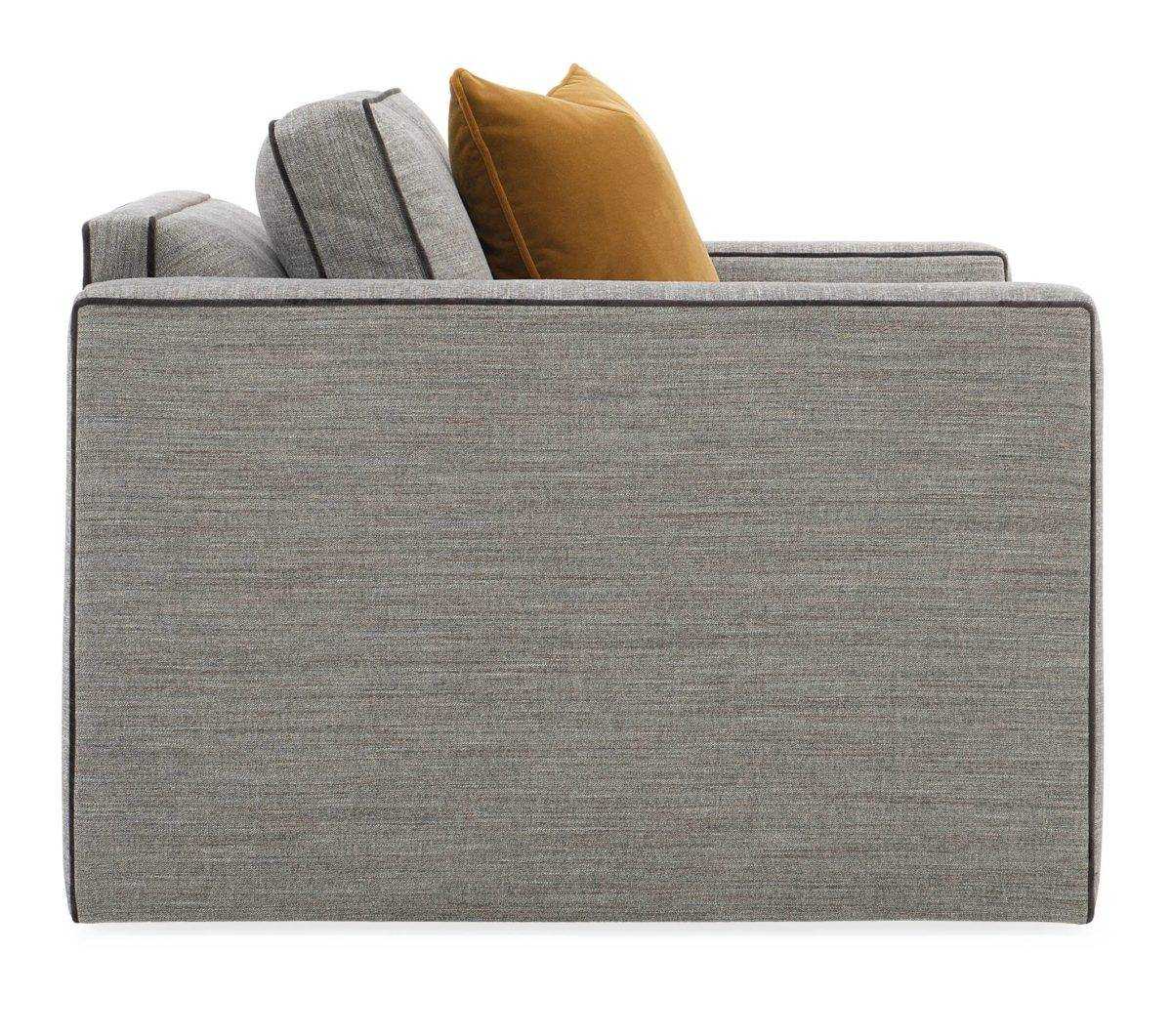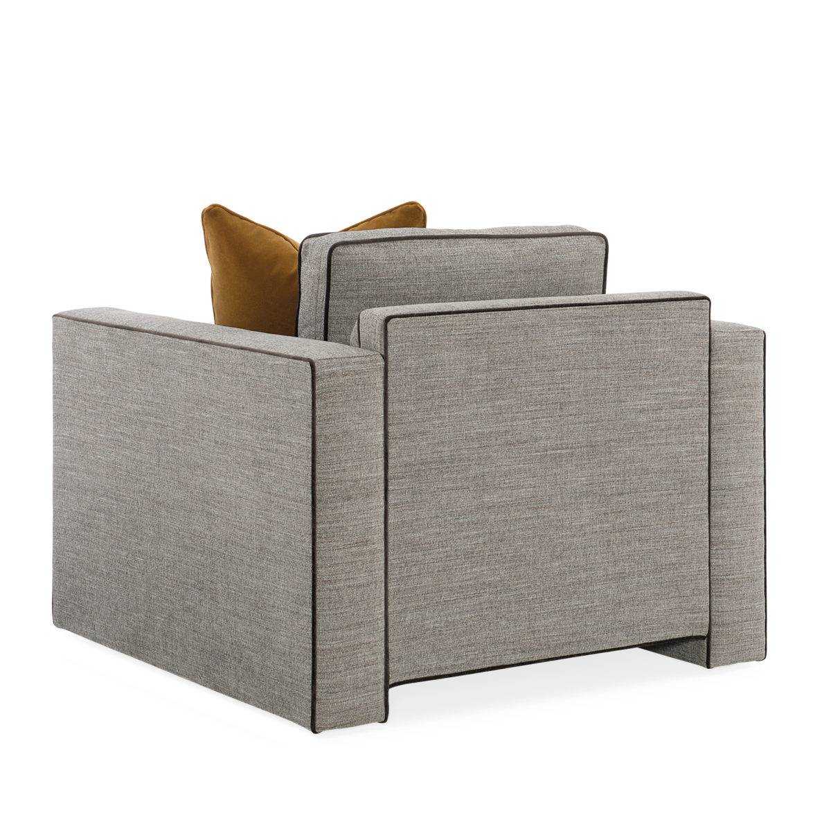 Drawing inspiration from Fashion Week in Paris, the Welt Played chair offers modern styling brought to life with warmth and texture. The autumn colors and material combinations shown by major apparel design houses inspired this chair’s tweed, chocolate, and spice combination. Tailored in a gray, menswear-influenced fabric, it features clean lines and linear forms outlined with contrasting welts in chocolate brown. The resulting aesthetic is one of understated sophistication.